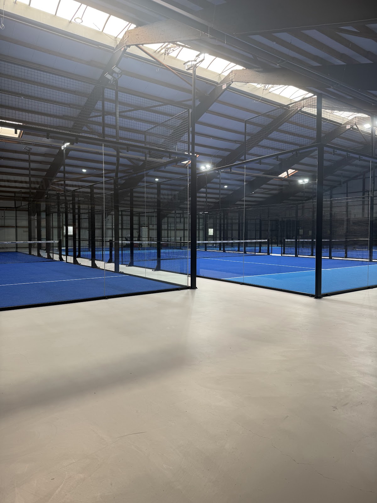 PADELHAUSEN ist eine moderne Padel-Anlage in Dormagen mit 5 Indoor-Courts (4 Double Courts und 1 Single Court). Die Courts bieten panoramische Sicht und sind hochwertig ausgestattet. Die Anlage befindet sich in der Soft-Opening-Phase und bietet eine Cafeteria, Umkleiden, kostenloses Parkplatz, WiFi und Ausrüstungsverleih. Mit großzügigen Öffnungszeiten von Mo-Fr 8-23 Uhr und Sa-So 9-23 Uhr bzw. 22 Uhr ist die Anlage flexibel nutzbar.